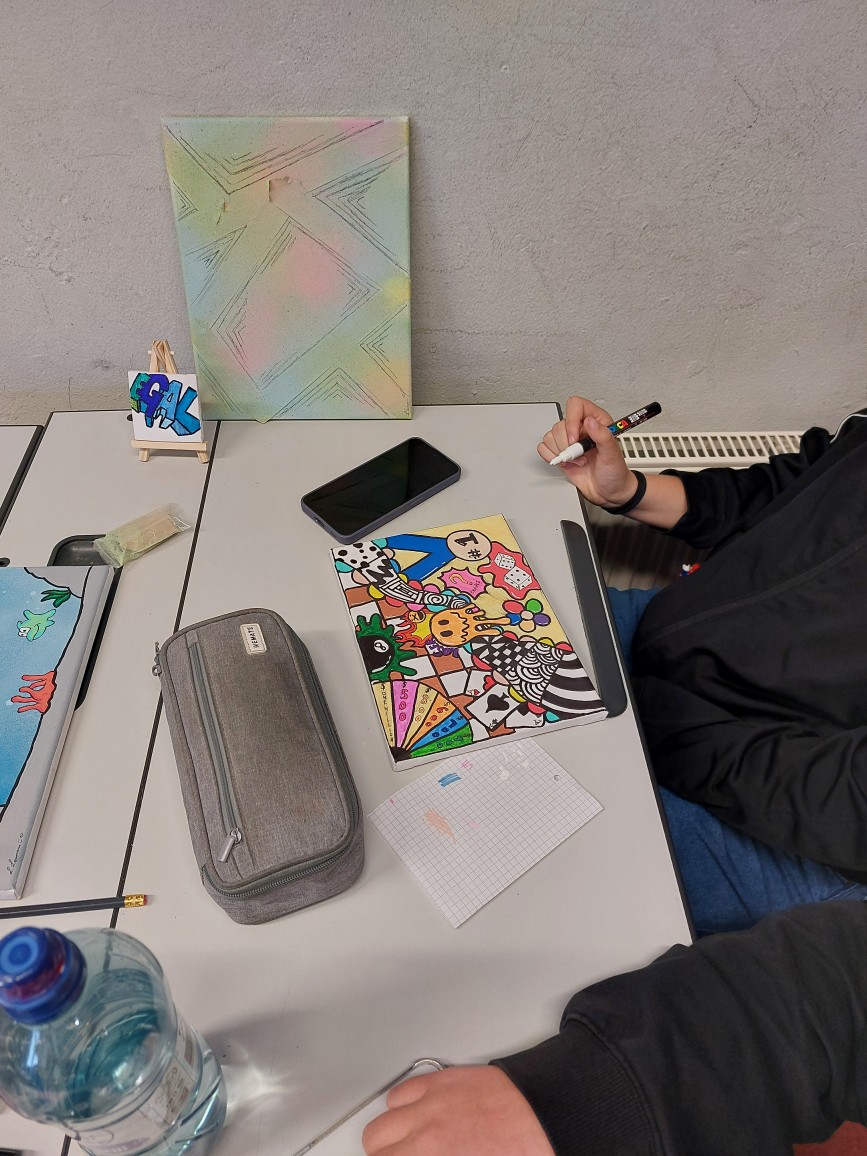 Für die Klassen 7 bis 9 begann die Woche mit dem großen Aufräumtag am Montag, bevor es am Dienstag und Mittwoch in spannende Projekte ging: Graffiti-Werkstatt, Filmwerkstatt, Fotografie und eine Holzwerkstatt, in der die neuen Spiele für das Schulhoffest entstanden. Ein großes Dankeschön an 17zwo58 e.V., die Graffiti und Filmwerkstatt finanziell unterstützt haben – ohne diese Hilfe wären diese kreativen Projekte nicht möglich gewesen.