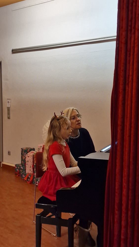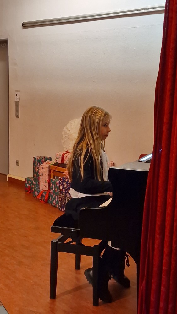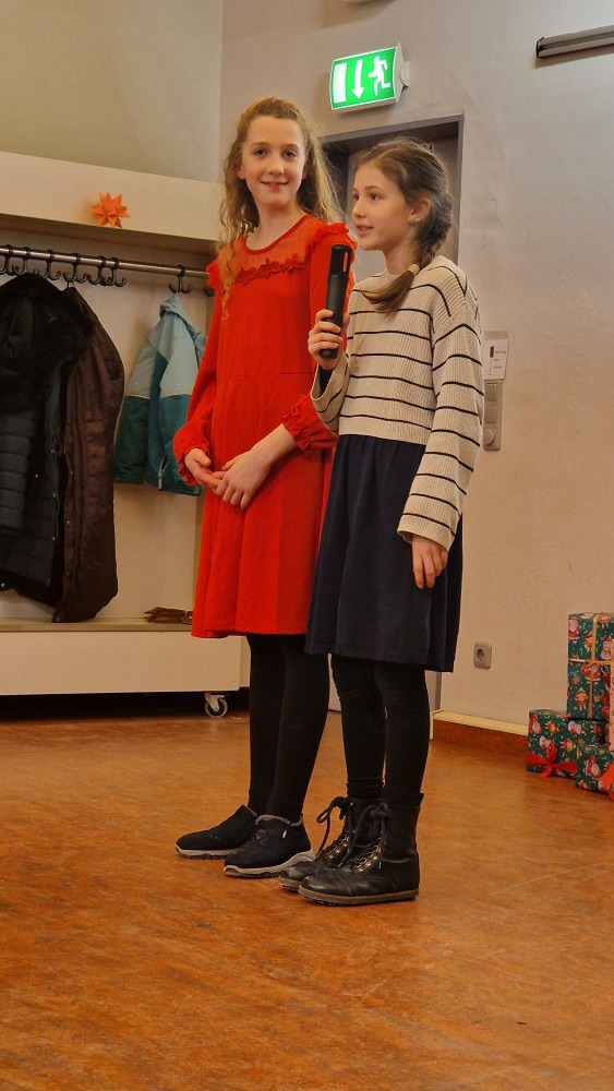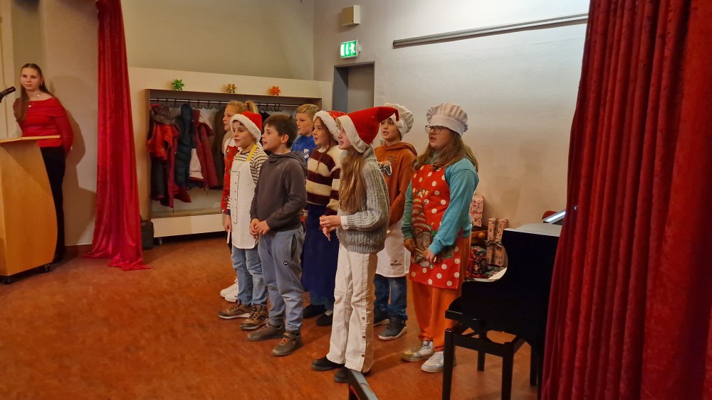 Klavierstücke, Gedichte, Lieder, ein Tanz, ein kleines Theaterstück – und natürlich der Chor aus Klasse 2, der beim Einmarsch in die voll besetzte Aula selbst kurz innehielt. In den Augen der Kinder lag deutliches Staunen: über die vielen Zuschauer, über den Applaus, über diesen besonderen Moment.