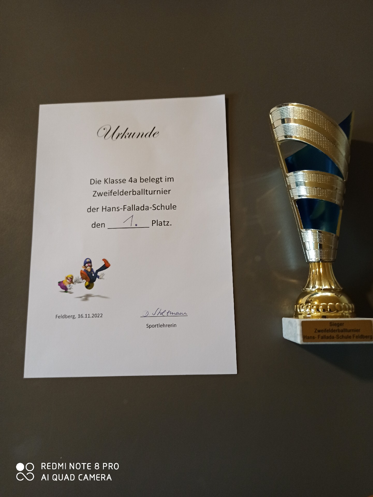 Seit Wochen haben die Dritt- und Viertklässler für das Turnier vielseitige Übungen rund um den Ball absolviert und fleißig trainiert. Am 16.11.2022 gab es die Schulmeisterschaft. Es war ein toller Wettkampf, Tränen, Schweiß, blaue Flecke und Jubel, es war alles dabei. In der Vorrunde wurden 10 Minuten gespielt und in der Hauptrunde 20 Minuten. Die hatten es in sich. Sieger wurde die Klasse 4a und somit bekamen sie den Wanderpokal überreicht.